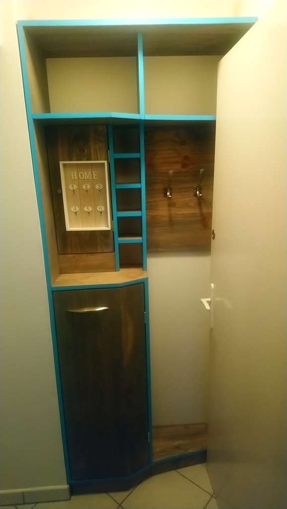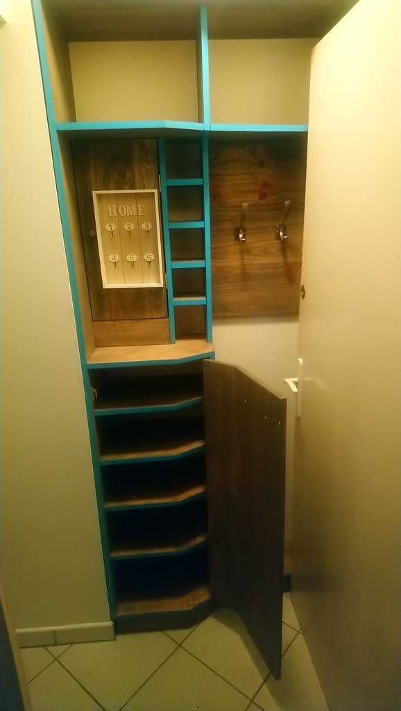 Une petite réalisation sans prétention d'un meuble d'entrée pour chaussures, clé, sac à mains, manteau, etc enfin tout les truc et bidules qu'on veut poser en entrant chez soi.