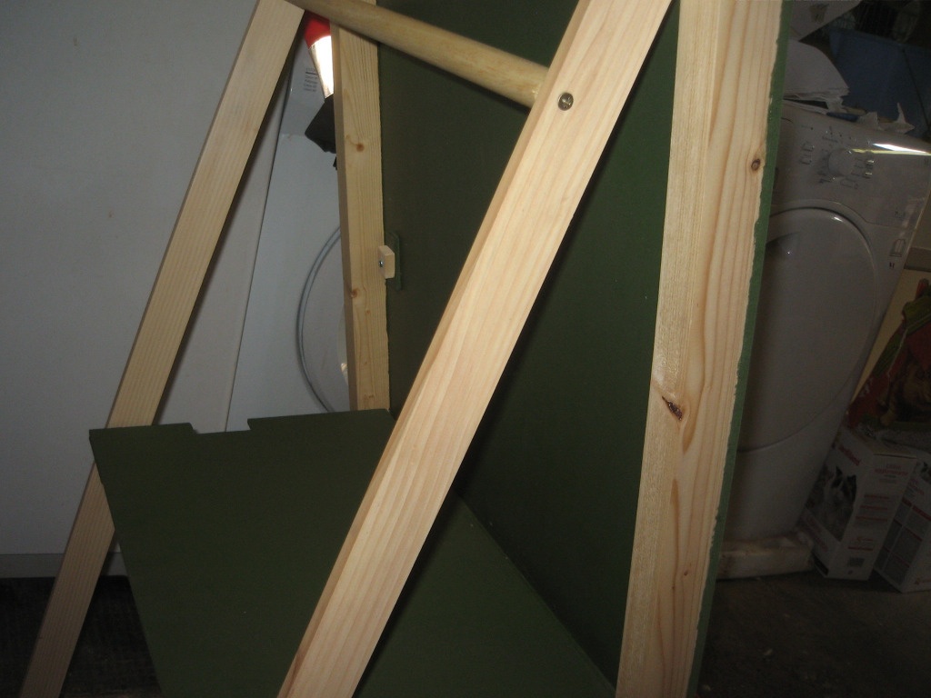 Je l'ai voulu le moins encombrant possible (plié il fait l'épaisseur du tasseau). La tablette est amovible.