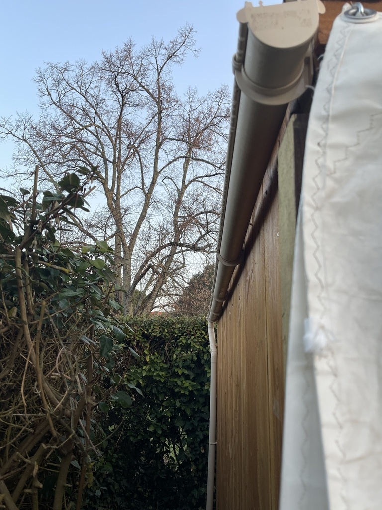 Bon là il pleut, j'ai mis provisoirement une vielle voile de bateau pour protéger de la pluie battante.