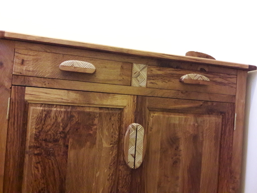 La touche finale avec un petit "diamond pattern" sur les poignées, avec un rappel entre les 2 tiroirs.