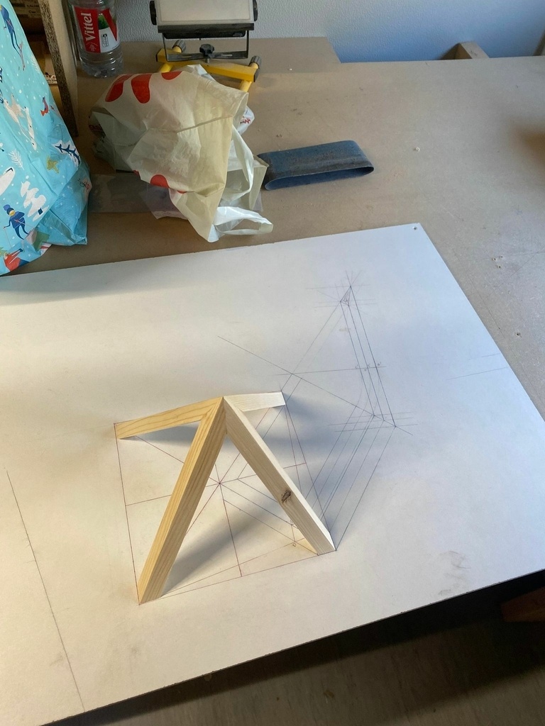 Exercice d'arêtier panneaux et massif. Dont un qui a un sommet excentré.