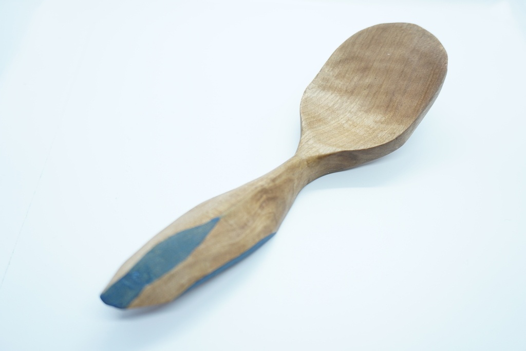 Deux cuillères réalisées dans du bouleau d'une coupe des arbres du jardin de mon papa.