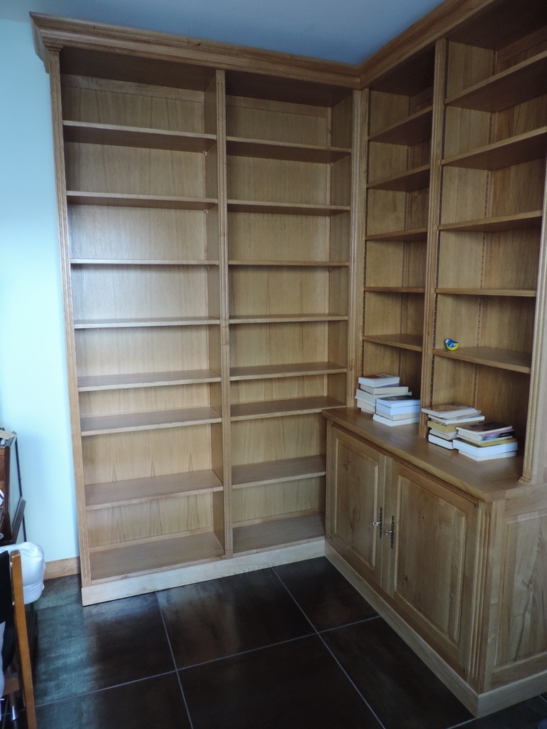 Ma dernière réalisation une bibliothèque d’environ 2,5 m de haut sur 6 m linéaire