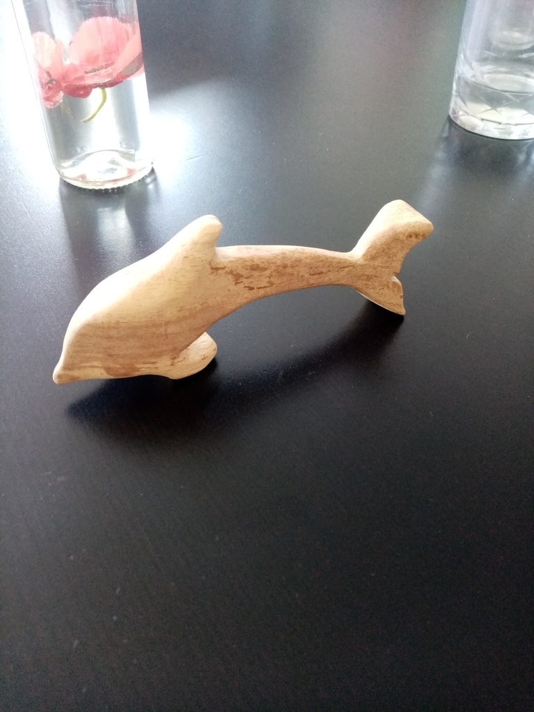 Petit dauphin fait à la scie à ruban pour ma fille de 9 ans. Le bois a été trouvé sur la plage, je soupçonne que ce soit du platane échauffé