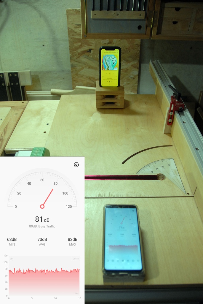 L'enceinte est donc constituée de 8 épaisseurs collées ensemble : 1 x fond (plein), 2 x pavillon courbure à droite, 1 x séparateur avec un trou à droite, 2 x pavillon courbure à gauche, 1 x séparateur avec un trou à droite et un trou à gauche, 1 x dessus avec la fente pour le téléphone.