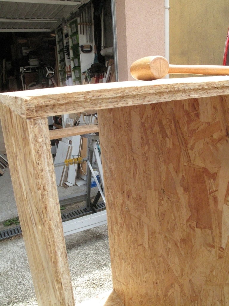 J'ai fabriqué un piétement rectangulaire avec les bandes de chutes de l'osb (pas de photo)