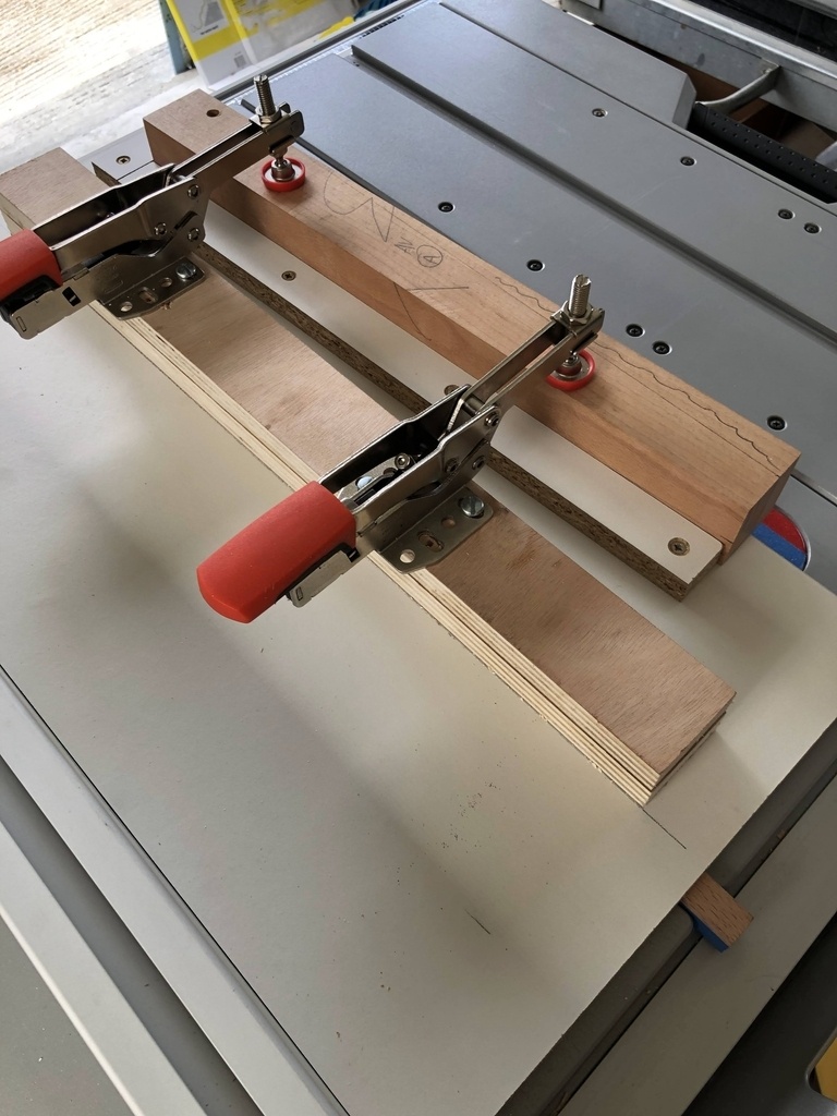 Un nouveau gabarit sur lequel j'ai placé une butée orientée et 2 sauterelles.