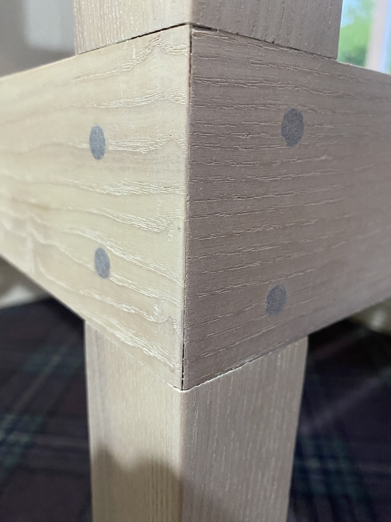 Les assemblages entre les cadres et les montants sont un mix de mi bois et de coupe d’onglets
