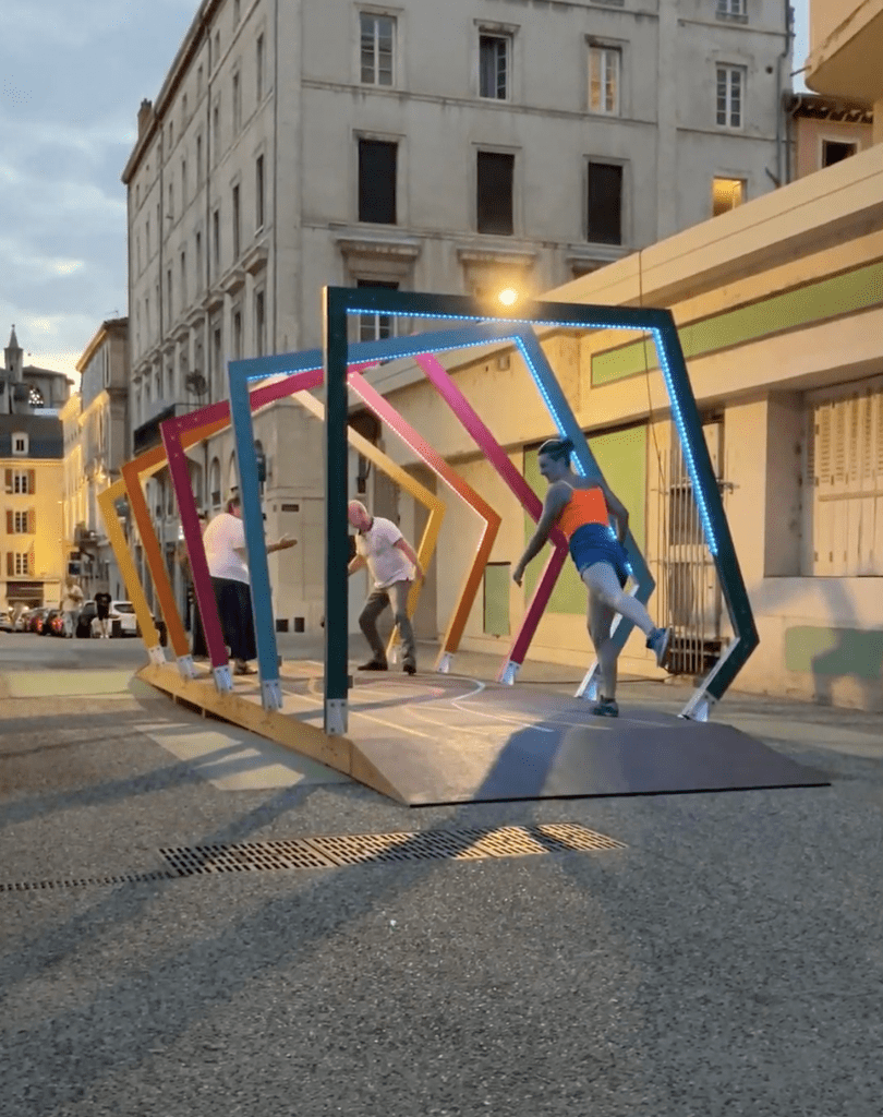 Mais le projet ne s'arrête pas à décorer la rue. L'ambition que nous avons souhaité mettre dans ce Pentacomix était qu'il puisse interagir avec les festivaliers. Ainsi, chaque arche contient un capteur infrarouge qui saura détecter le passage et déclencher un son et s'illuminer.