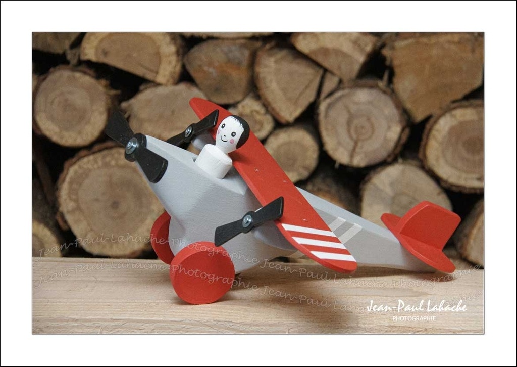 quatre avions en bois peints destinés à devenir des jouets pour mes petits enfants bois sapin de douglas corps avion, contreplaqué ailes, frêne roues, tourillon hêtre axe des roues, frêne personnages