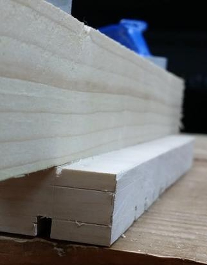 Pour fabriquer les barrières, j'ai raboté deux petites barres en hêtre, de 20 mm de large (correspondant à la hauteur finale de cette barrière dans le jeu), et de 12 mm d'épaisseur.