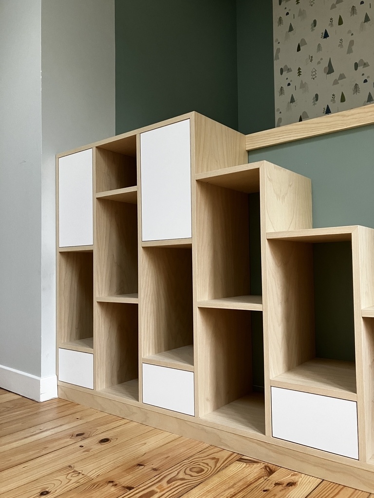 J'ai pu profiter du besoin de rangement pour faire un escalier avec le placard.