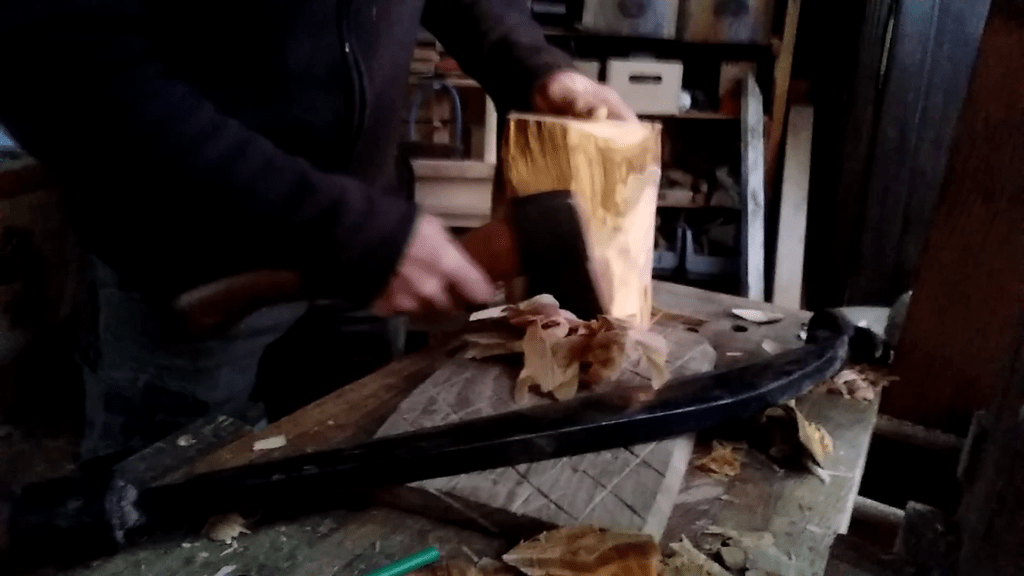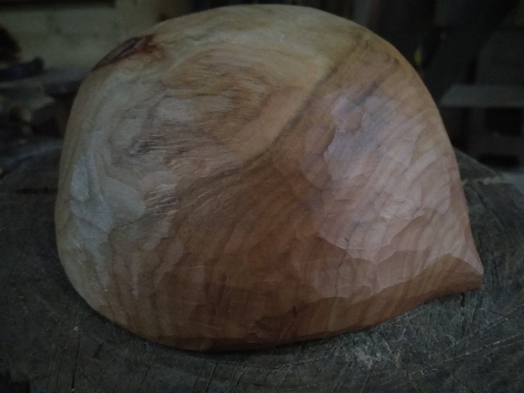 D'abord avec une gouge de 50mm forgée par Léo de LaForgeRayonnante , ensuite à l'herminette (acheté l'année dernière à Adrien Encompagniedescopeaux ) (dans la vidéo je vous montre mon affûtage d'entretien) ensuite gouge col de cygne de Léo finition aux crochets de sculpture et racloir pour l'intérieur.