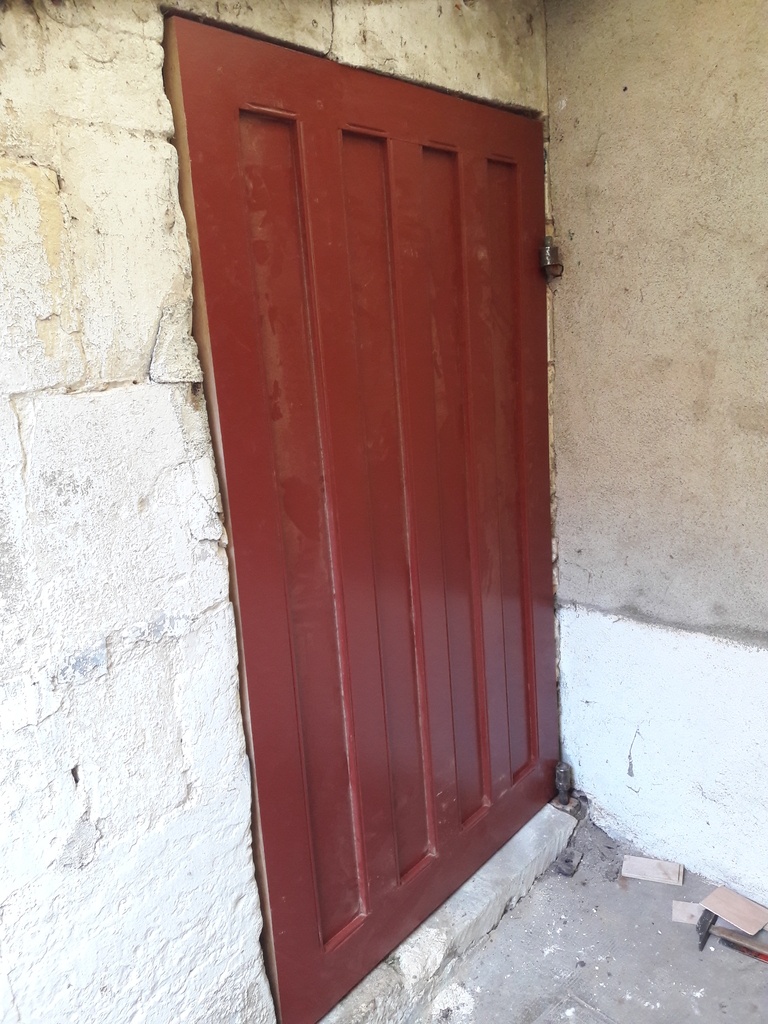 Au dessus de cette porte, il y a une plaque de tôle ondulée en plastique bien jaunie... La maison est pas mal, mais difficile à montrer, il y a une toute petit courette et donc pas de recul.