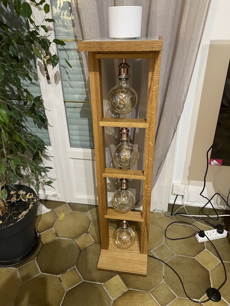Ce lampadaire est ma troisième réalisation depuis que j’ai commencé à m’intéresser au bois et franchement je ne suis pas prêt d’arrêter tellement c’est apaisant !