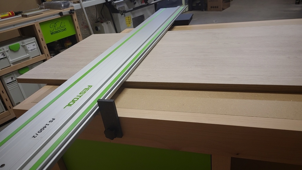 Hello! C'est top! Je dois moi meme positionner mes rails en T sur mon etabli, Tu les as positionné à quelle distance du haut du plateau pour que le basculement de la règle se fasse bien?