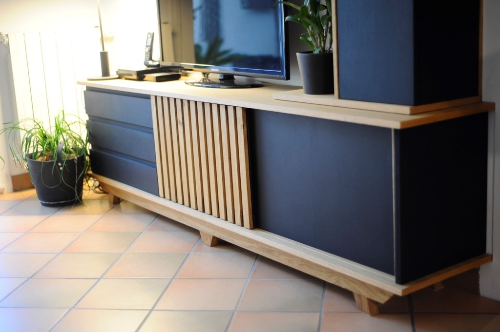 Ca a été long puisque le devis a été signé en octobre et le meuble livré la semaine dernière. Comme beaucoup avant moi sans doute, j'ai largement sous évalué le temps à y passer et je me rends compte que je suis moins tolérant sur les meubles que je livre que sur ceux qui restent à la maison, ce qui n'arrange rien.