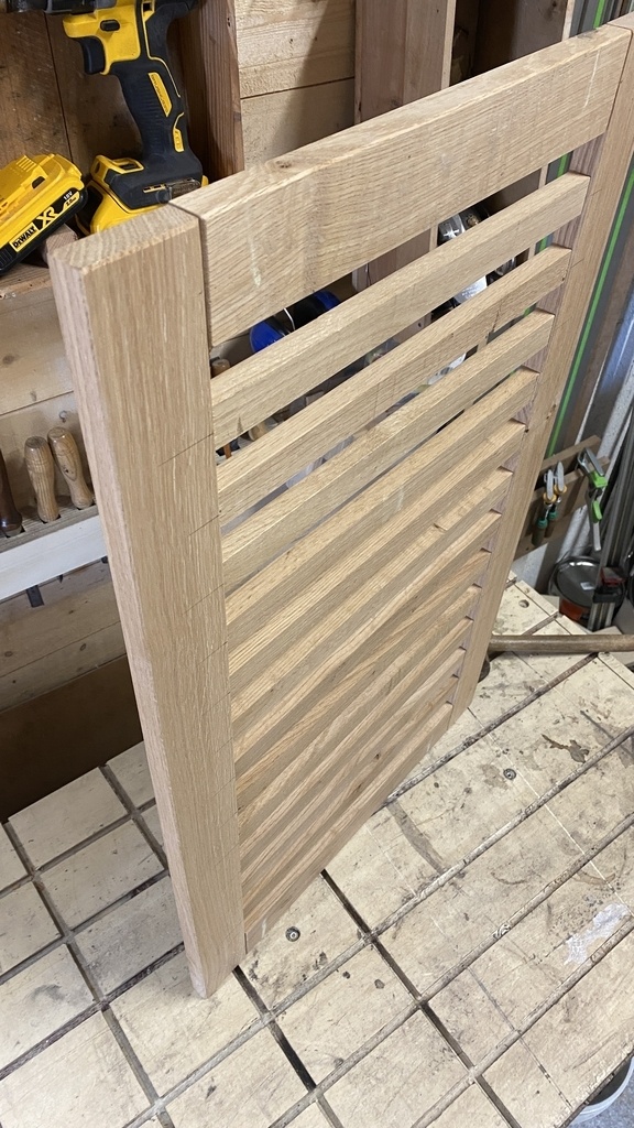Les montants et traverses ont une section de 22x50mm, les panneaux sont à 10mm.