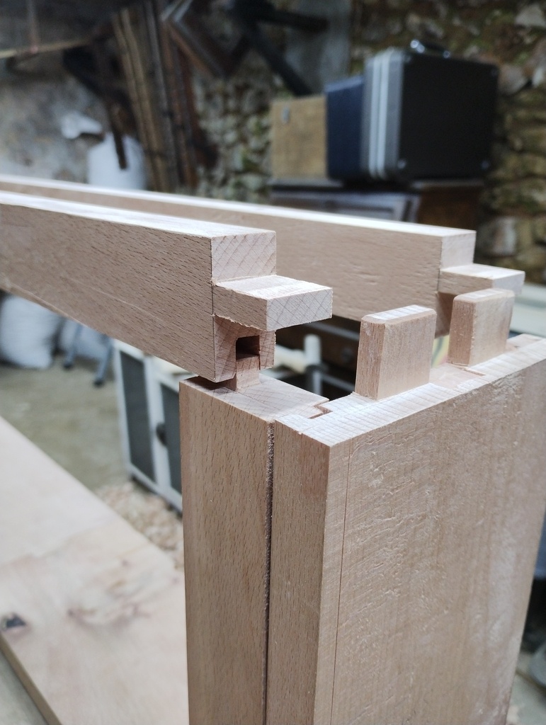 - Tiroir porté, assemblage tradi en queue d'aronde.