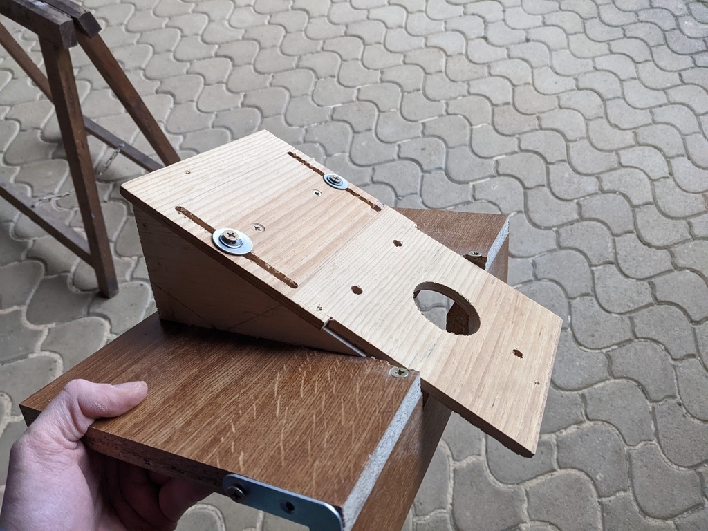 Pour faire la forme, j'ai utilisé un gabarit en contre-plaqué puis affleuré avec la défonceuse.