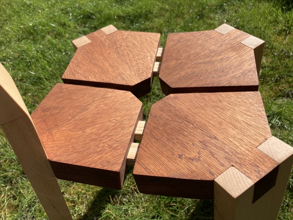 J’ai quasiment tout fait à la main (coupe, rabotage, queues droites et la mortaise), il y a pas mal de petites imperfections mais on va dire que c’est ce qui fait son charme!