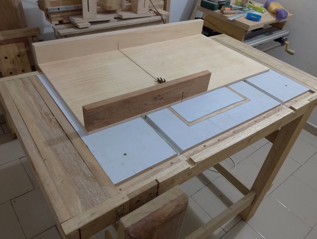 Merci beaucoup. Un des soucis est que pour l'instant je n'ai pas un vrai établi (le projet est en cours) donc je n'ai pas de rainures pour faire coulisser le traineau. D’où les guides latéraux. Mais ça va venir vite.