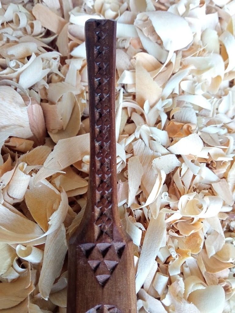 10ème cuillère de 2023 : Cuillère à salade en bouleau cuite au four. Malheureusement l'arrière a fendu. Rattrapage avec cette forme inhabituelle pour ne pas la jeter. Continuation d'acquisition de nouveau design de chip carving. Je me suis inspirée pour une des formes de woodchipcarving dont je découvre son travail.