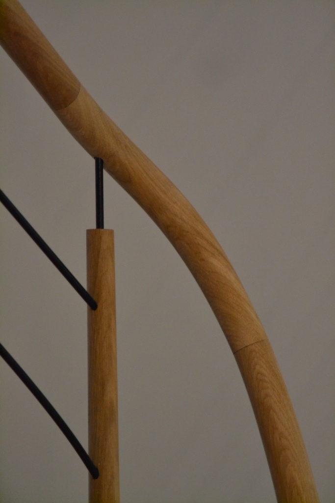 Bonjour voici un des escalier étudié, réalisé et posé ce printemps par mes stagiaires greta en preparation de leur cap.Limon central en trois plis sapin replaqué en chène,balustres coniques tournéés à la toupie.Main courante débillardée et moulurée en rond de 50mm.Travail je pense trés formateur pour eux.Kenavo