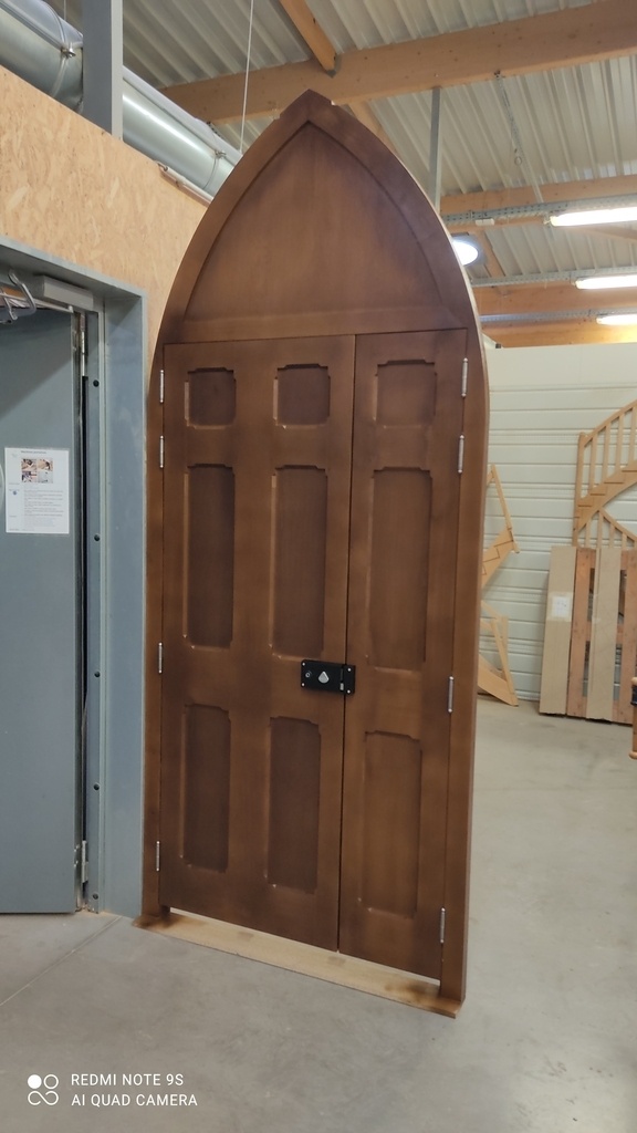 Le chantier était pour un particulier qui restaurait une chapelle qui se trouvait dans son jardin. L'ancienne porte est restée chez le client, il voulait la garder mais je ne sais pas ce qu'il en a fait