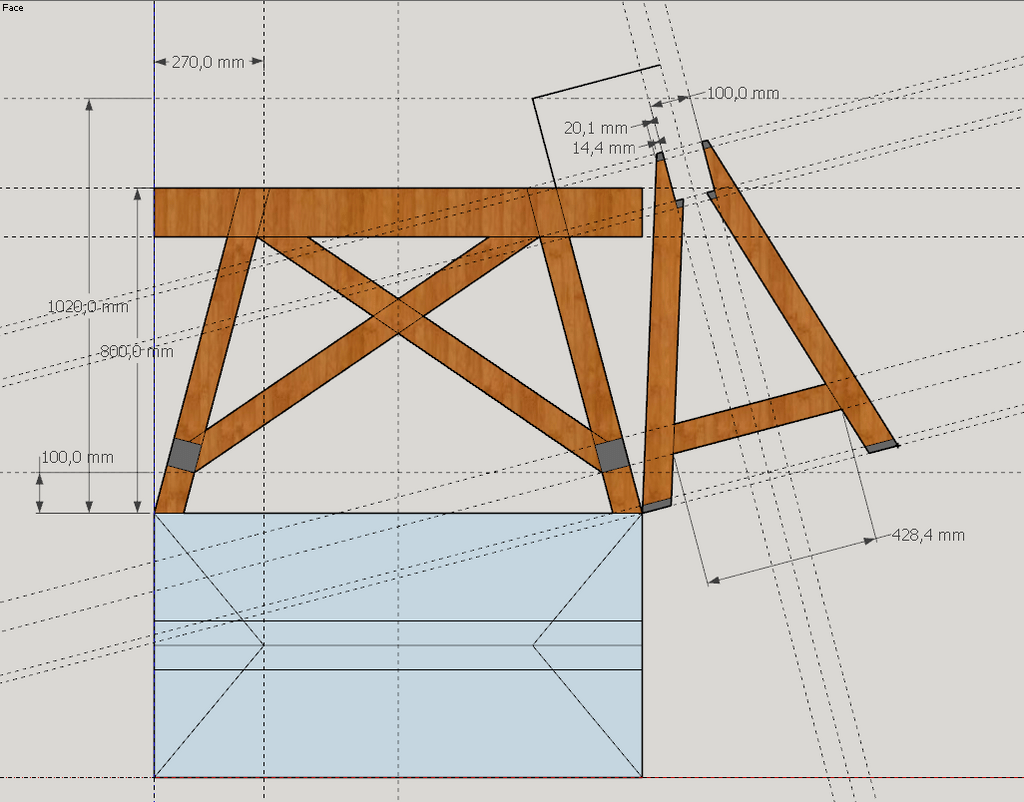 Et vue les mi-bois + vis + PU pour l'assemblage pieds-chapeau, ils ne vont pas s'écrouler