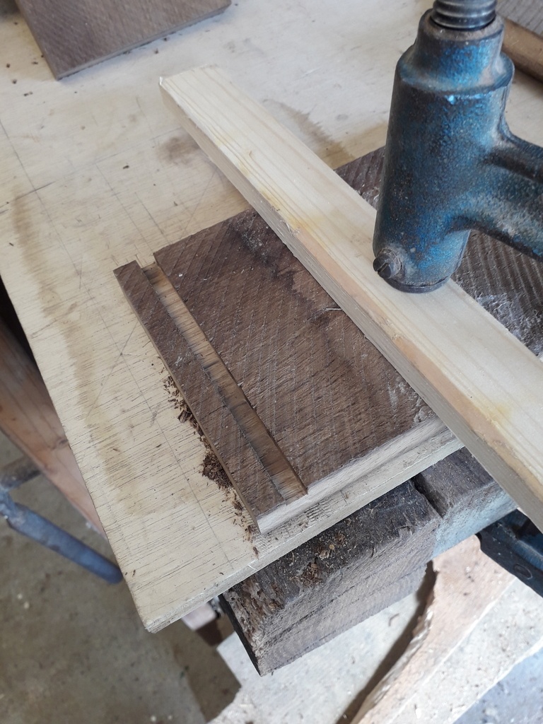 J'avais récupéré quelques planches (deux pour 60m² démontés !!) pas trop vermoulues du plancher du grenier à foin chez moi. Et j'avais récupéré un lot de rabots : je voulais tester celui à rainurer. J'ai vite abandonné, trop sale état et difficile à remettre en route. J'ai simplement utilisé ma bédane pour la rainure.