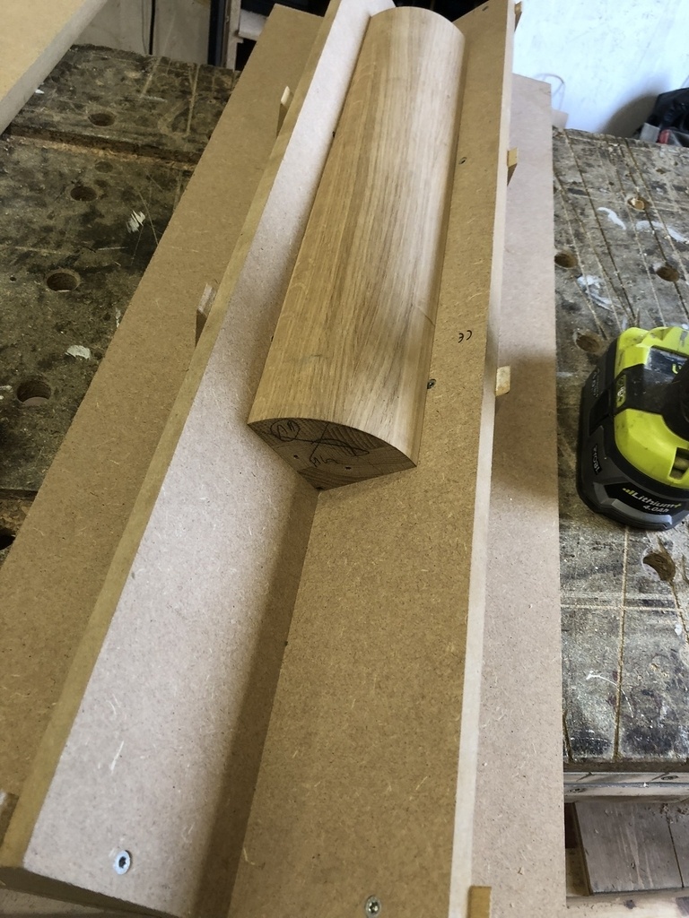 Pour la face extérieur les 4 pièces sont unies et tournées ensembles au dessus de la scie sous table, les courbes intérieur sont faites en passant de biais au dessus de la lame de scie sous table en montant petit à petit la lame (encore une fois plus qu’inspiré par la technique de Maître Boris sur son claustra)