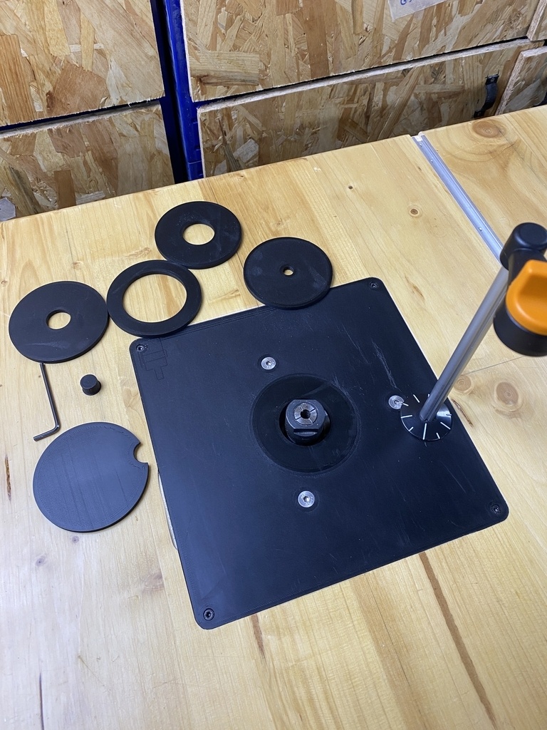 La plaque avec accessoires (bagues, bouchons, serreurs sous table et embout pour aspirateur) est fournis dans la section plans de l'Air du Bois.