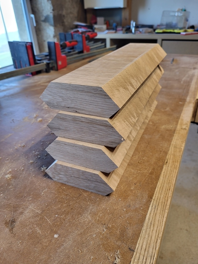 - Les bords ont été fait dans un autre lot de chêne que le reste du meuble. La différence de couleur est malheureusement très marquée.
