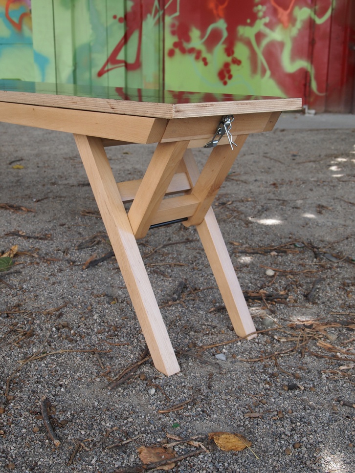 La version pliable de notre banc zig-zag. Toujours la même silhouette sobre et originale, le côté pratique en plus !
