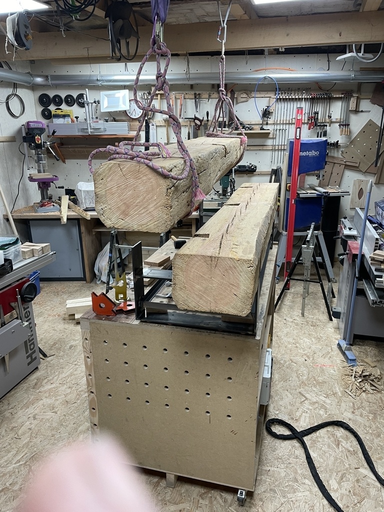 Rabotage du dessus des poutres (280mm x 280mm) pour la mise à niveau.