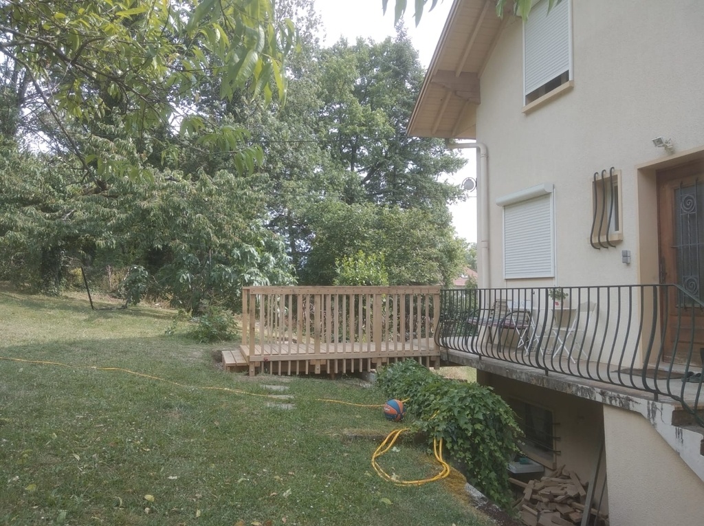 Entièrement réalisé en chêne local scié hors aubier par notre partenaire scierie Dagan à Cusy (73). Les bois mis en œuvre sont bruts de scierie, il y a 1,1 mètre cube.