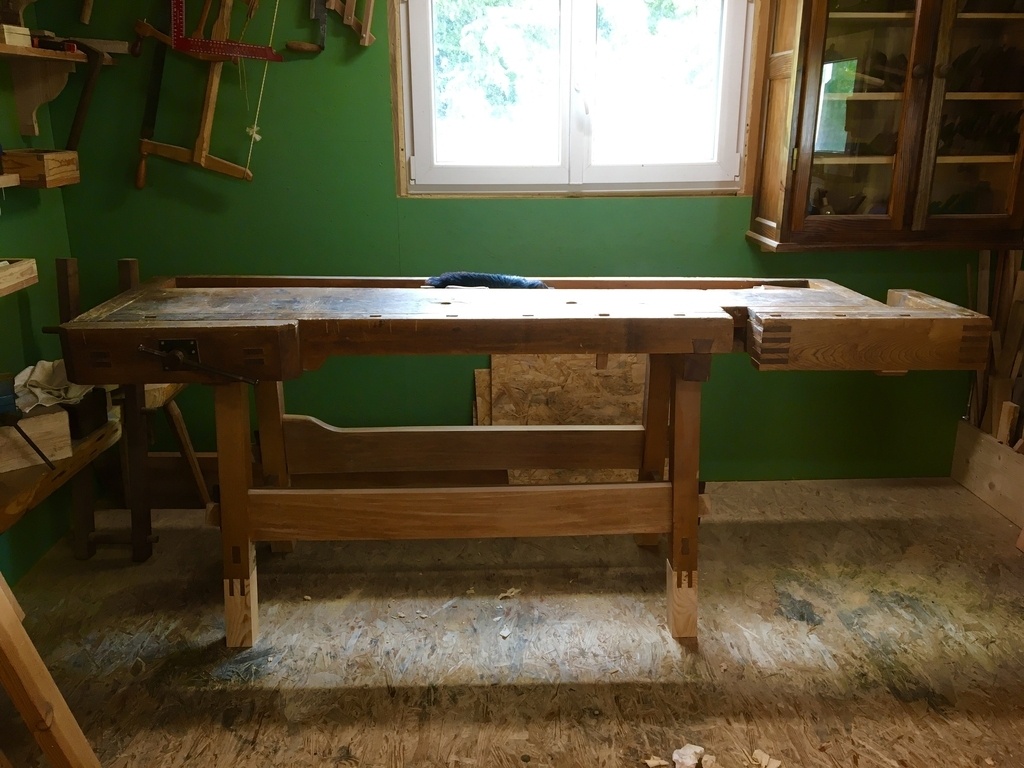 Merci, c’est l’établi que l’on trouve classiquement en Alsace, je l’ai fait en orme, tout à la main.