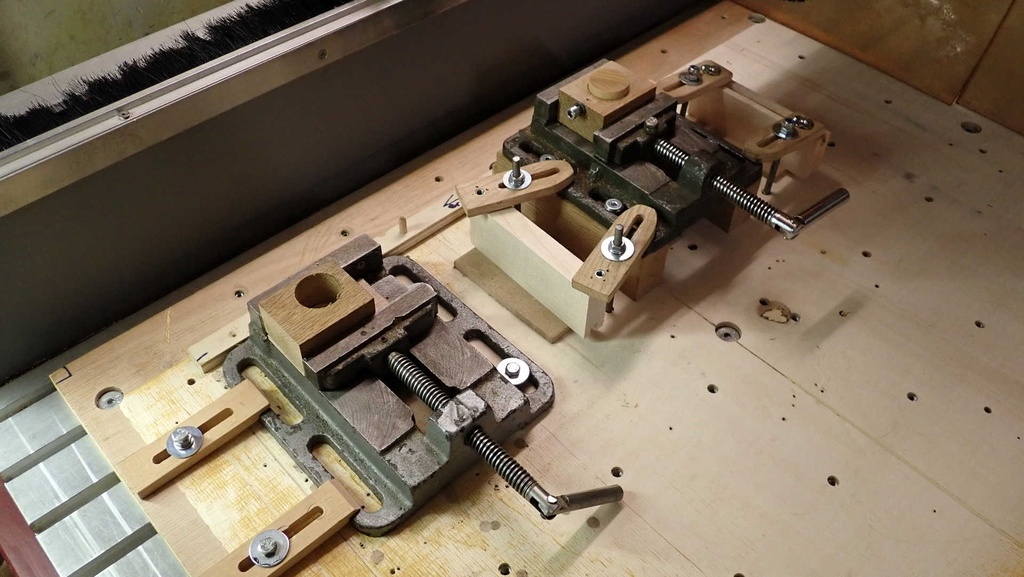 Bon, y'a plus qu'à réusiner les logements (avec reprise méticuleuse du zéro X, Y, Z. Mais il a fallu quand même 4 logements avant de réaliser l'incongruité de la présence de rondelles en bois dans les logements... Oubli du calage de la profondeur finale, gasp.