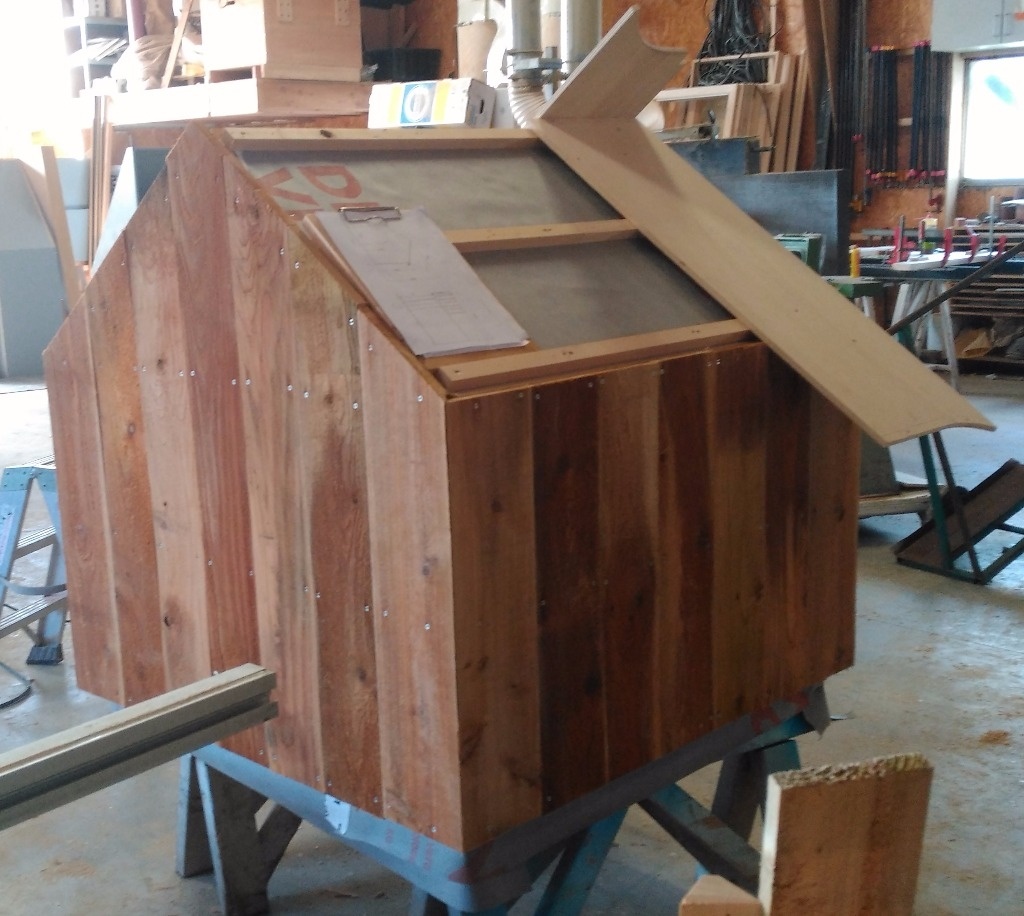 Réalisation de la structure en contreplaqué sapin de 12 mm. Assemblé avec des tasseaux.