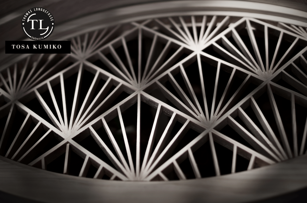 Pour la partie kumiko, un premier passage à Tosa kumiko et Tanihata Kumiko m'a permis de faire un tour de pistes d'un peu tous les motifs qui existaient, qu'ils soient traditionnelles ou contemporains, j'ai pu en fabriquer pas mal de différents, pour voir un peu les différentes techniques qu'ils utilisent. Du Hagana traditionnelle ( rabot à angle ), aux machines les plus modernes, en passant par les techniques européens du ciseaux à bois, j'ai un peu tout essayé.