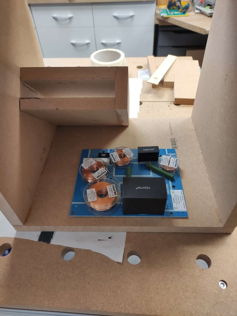 Initialement je souhaitais ajouter des flancs en bois "naturel" mais le poids résultant réduisait la maniabilité des enceintes.