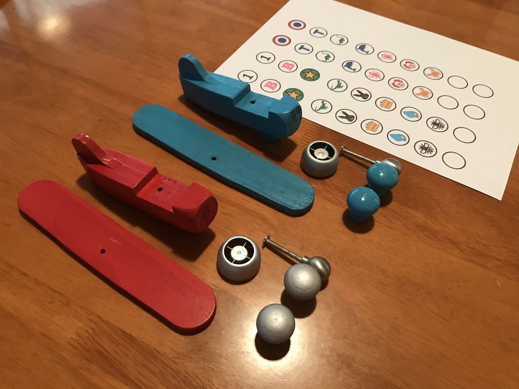 - un corps d'avion et une aile, découpés à la scie à chantourner et peints (trois épaisseurs de tasseau pour le corps) ;