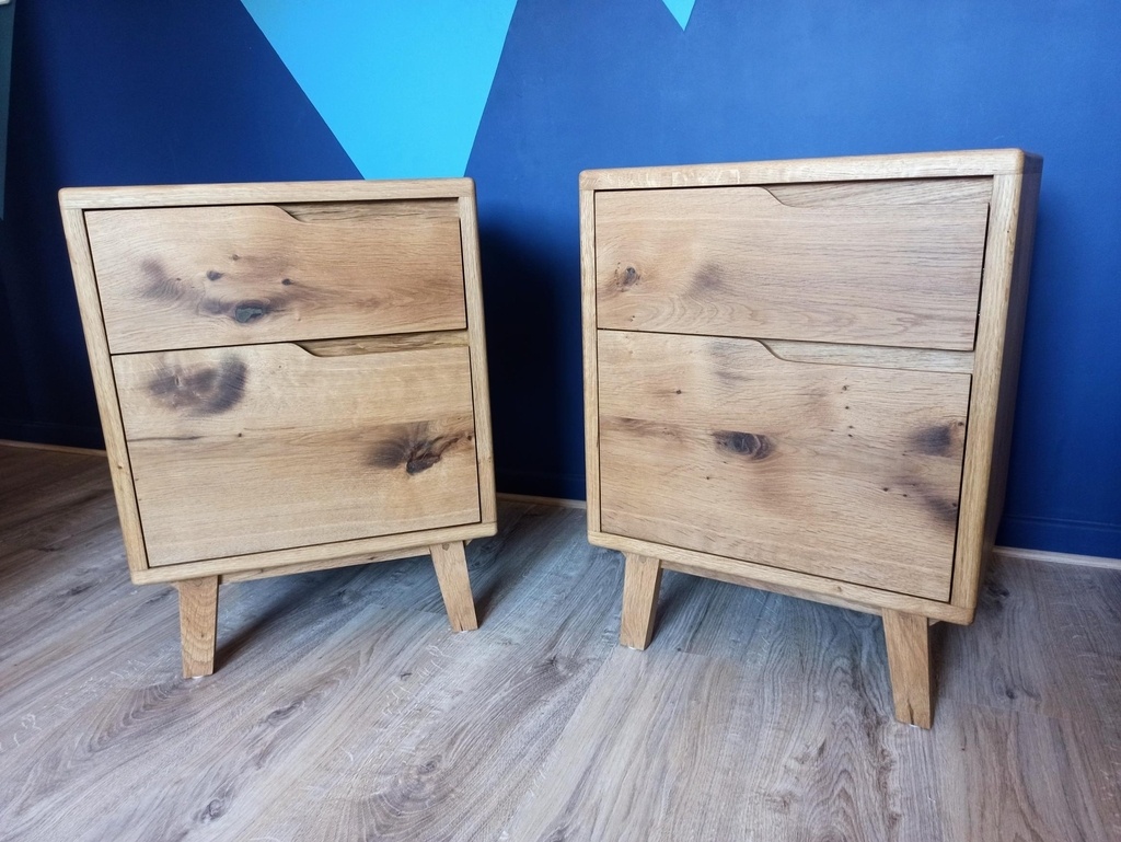 Duo de tables de chevet en chêne. Quelques photos de la réalisation ci-dessous.