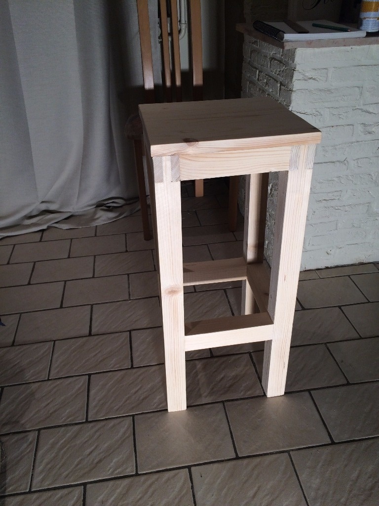 Si je puis me permettre ...pour le prochain tabouret, afin de gagner en solidité, tu devrais mettre le sens du fil de l'assise perpendiculaire à la traverse qui la supporte.