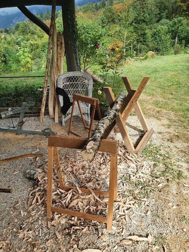 Je partage cette réalisation car outre le résultat que je trouve sympa, elle est très sobre en matériau et machine : les frênes sont condamnés dans l'avant pays savoyards, on parle beaucoup de la Chalarose du frêne, mais je soupçonne également l'Agrile car je vois souvent des galeries sous l'écorce des arbres...