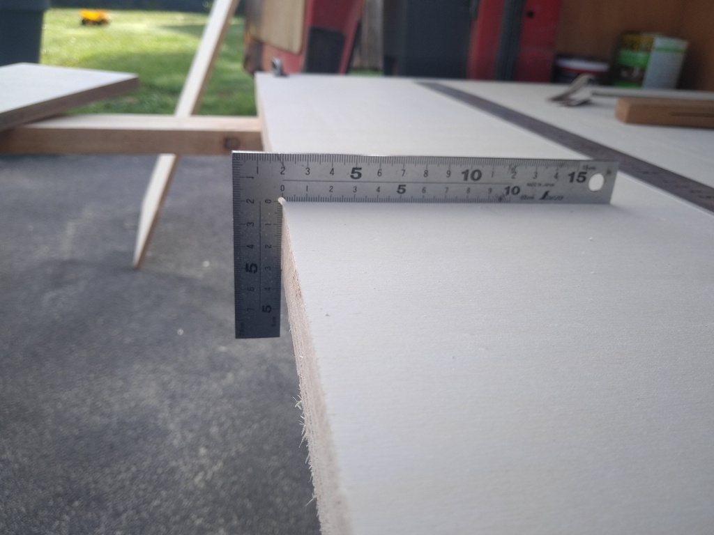 Niveau temps il m'a fallu 6mn pour scier 122cm (la largeur) de contreplaqué (30mm d'épaisseur puisque deux foi 15mm), donc 78 mn pour les 13 contremarches.