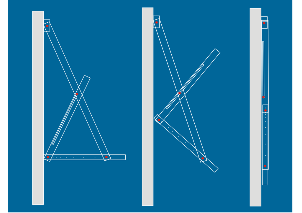Le mouvement de dépliage de la console avec des détails des charnières.