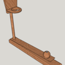 J'ai réalisé ces jeux de basket, jeu d'adresse assez amusant et addictif réalisé en hêtre, j'ai fait le ballon au tour, pas simple de faire une sphère de 25mm de diamètre à la volée, pour l'assemblage, juste un point de colle à l'arrière de la catapulte et 3 vis de 2*16mm. A l'arrière du panneau il y a une gorge pour venir épouser le poteau.