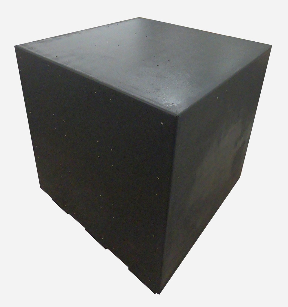Dimensions du cube 1m10, hauteur finale 1m20 pour permettre le passage des fourches du transpalette.